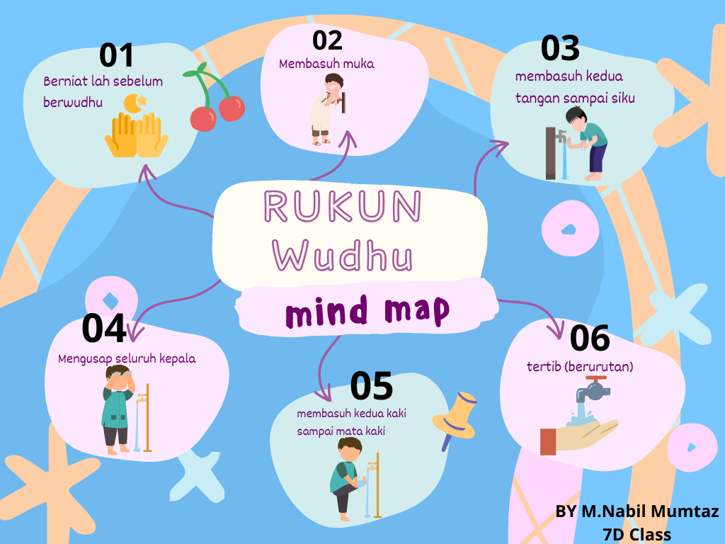 There are procedures for the pillars of ablution, guys, first we have to intend, then the second is to wash the face, the third is to wash both hands up to the elbows, the fourth is to wipe the whole head, the fifth is to wash the feet up to the ankles, and the last is to be orderly.