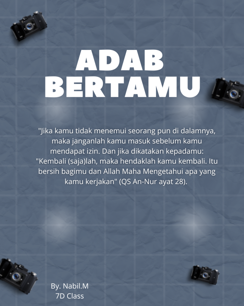 By admin / March 6, 2025 (Diniyah Lesson) Canva Poster Adab Adab Bertamu “If you don’t find anyone inside, then don’t enter until you have permission. And if it is said to you: “Just go back, then you should go back. It is clean for you and Allah is All-Knowing of what you do” (QS An-Nur verse 28). Download Project