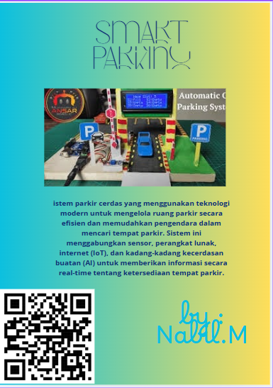 istem parkir cerdas yang menggunakan teknologi modern untuk mengelola ruang parkir secara efisien dan memudahkan pengendara dalam mencari tempat parkir. Sistem ini menggabungkan sensor, perangkat lunak, internet (IoT), dan kadang-kadang kecerdasan buatan (AI) untuk memberikan informasi secara real-time tentang ketersediaan tempat parkir.